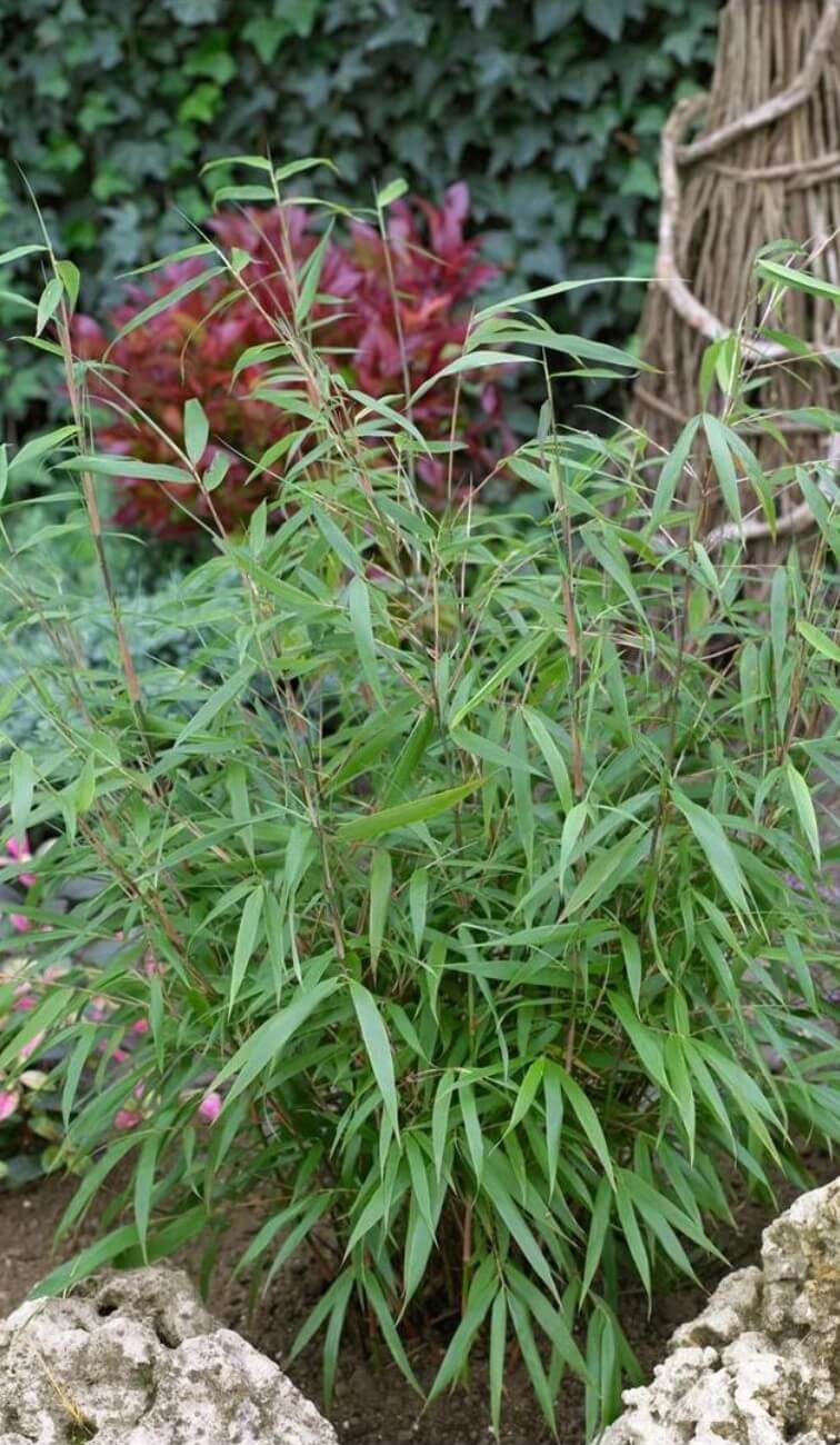 De halmen van deze bamboe zijn groenrood van kleur.